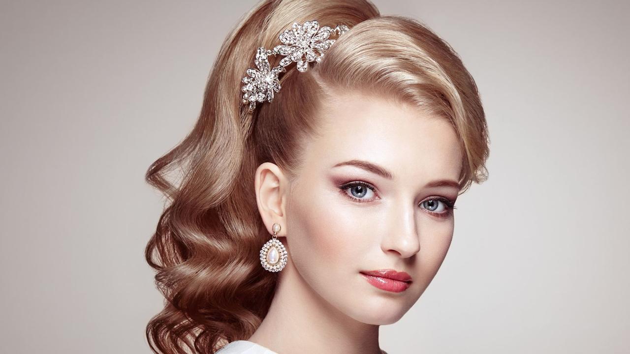 Обои Красивая голубоглазая девушка с украшением в волосах