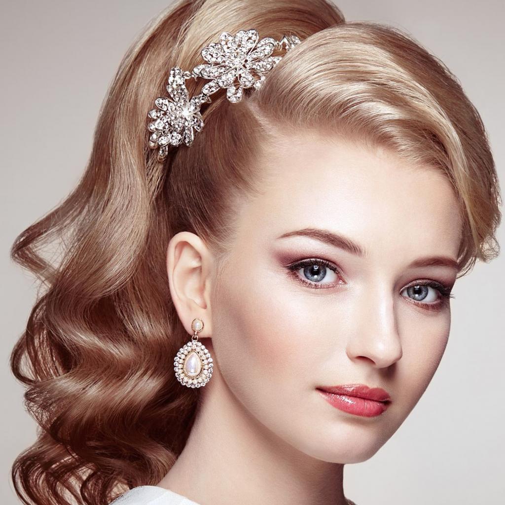 Обои Красивая голубоглазая девушка с украшением в волосах