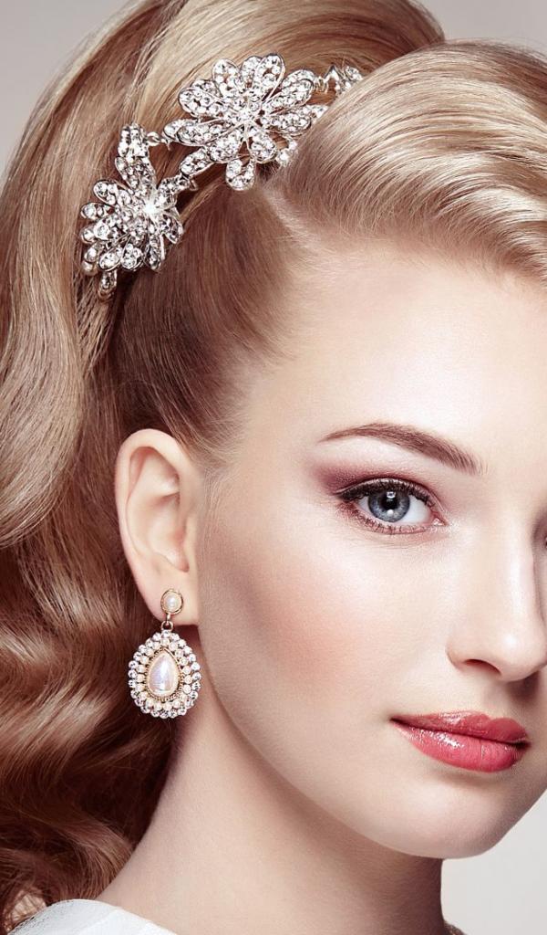 Обои Красивая голубоглазая девушка с украшением в волосах