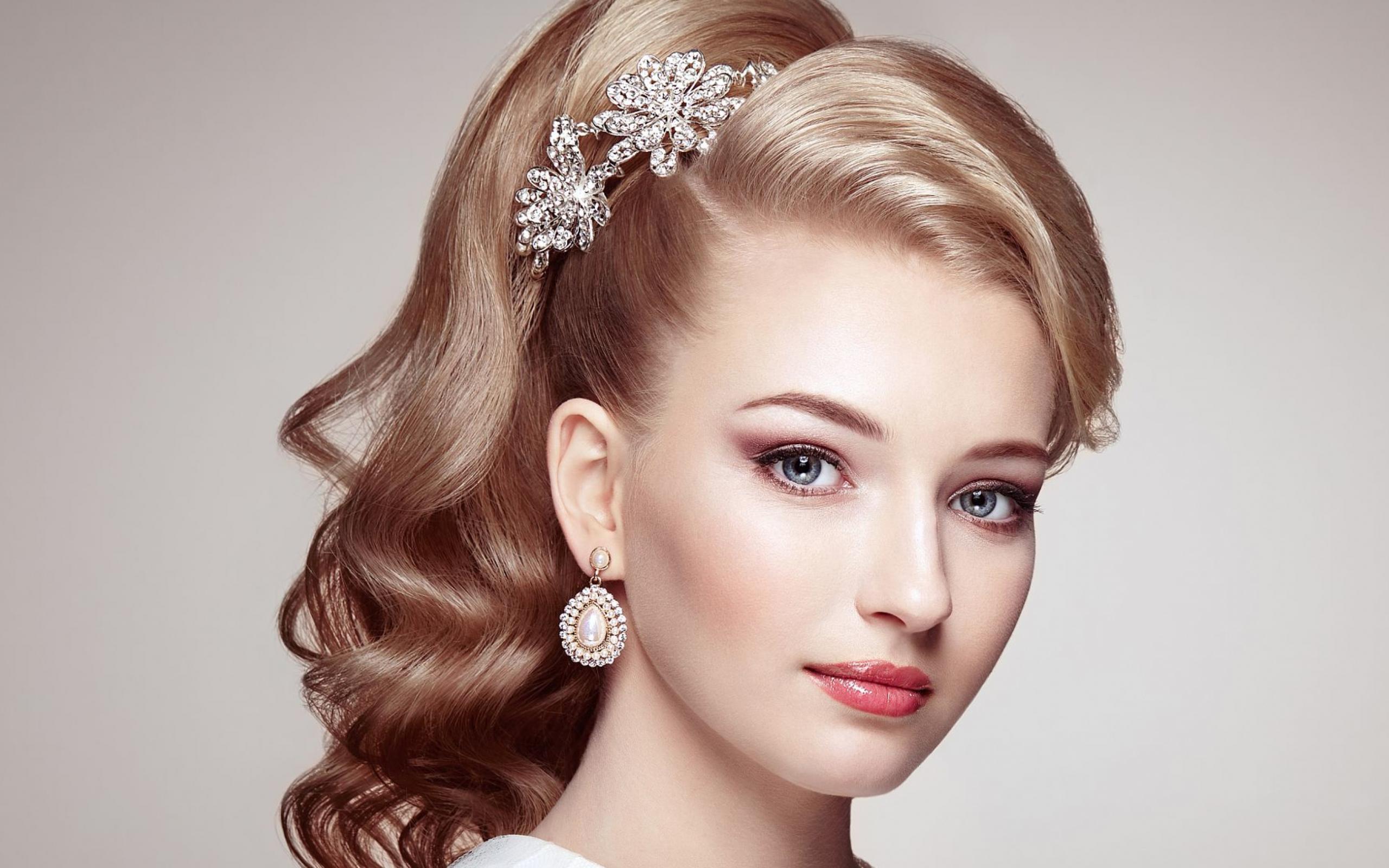 Обои Красивая голубоглазая девушка с украшением в волосах