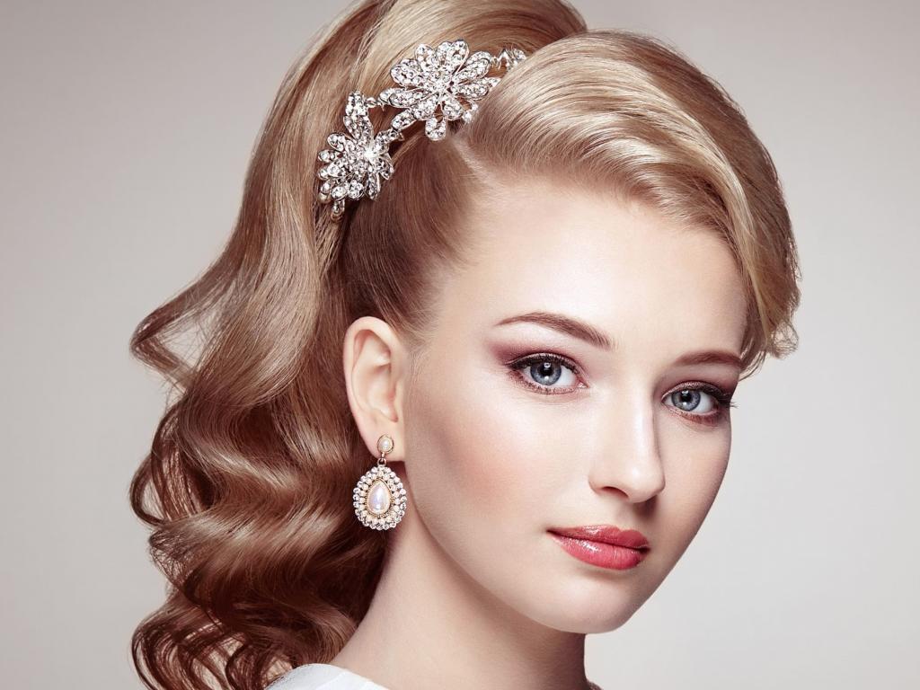 Обои Красивая голубоглазая девушка с украшением в волосах