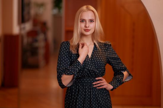 Обои Красивая девушка блондинка в черном платье