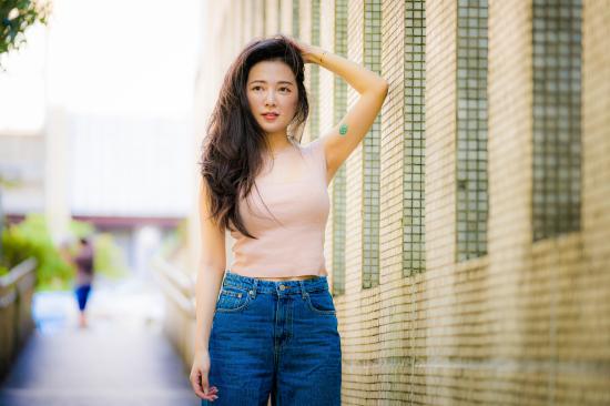 Обои Молодая азиатка с длинными волосами в синих джинсах