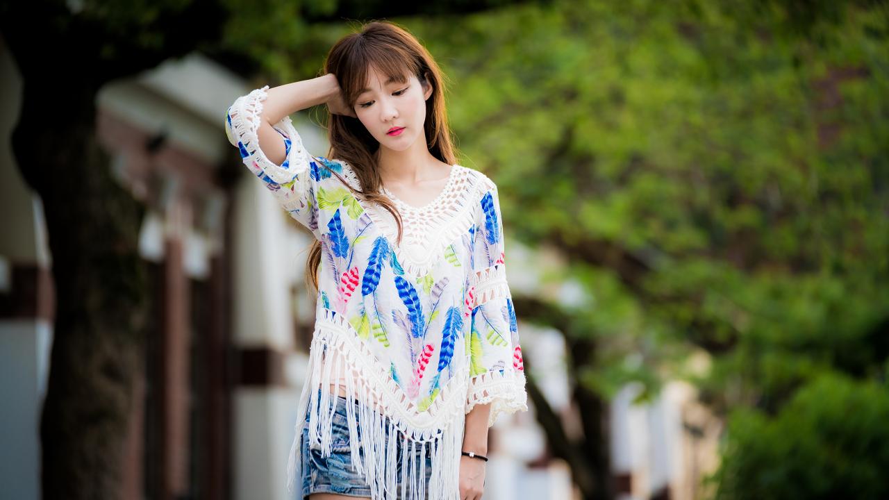 Обои Девушка азиатка в красивой разноцветной кофте