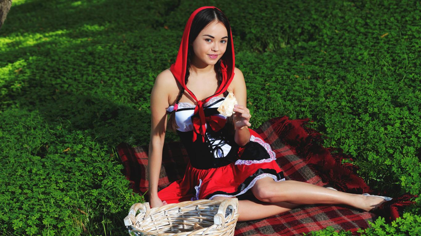 Обои Молодая девушка в костюме сидит на траве, косплей