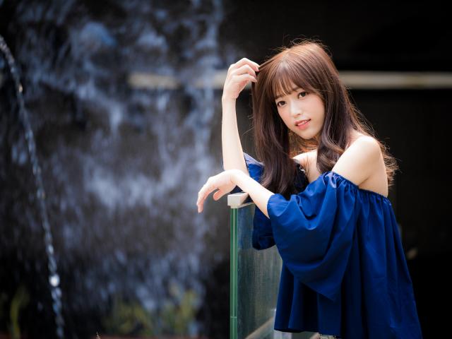 Обои Девушка азиатка в синем красивом наряде