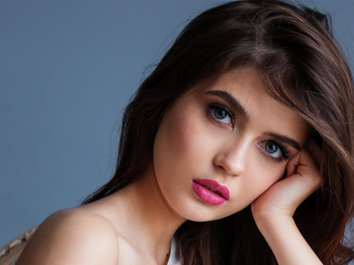 Обои Милая девушка с розовыми губами на сером фоне