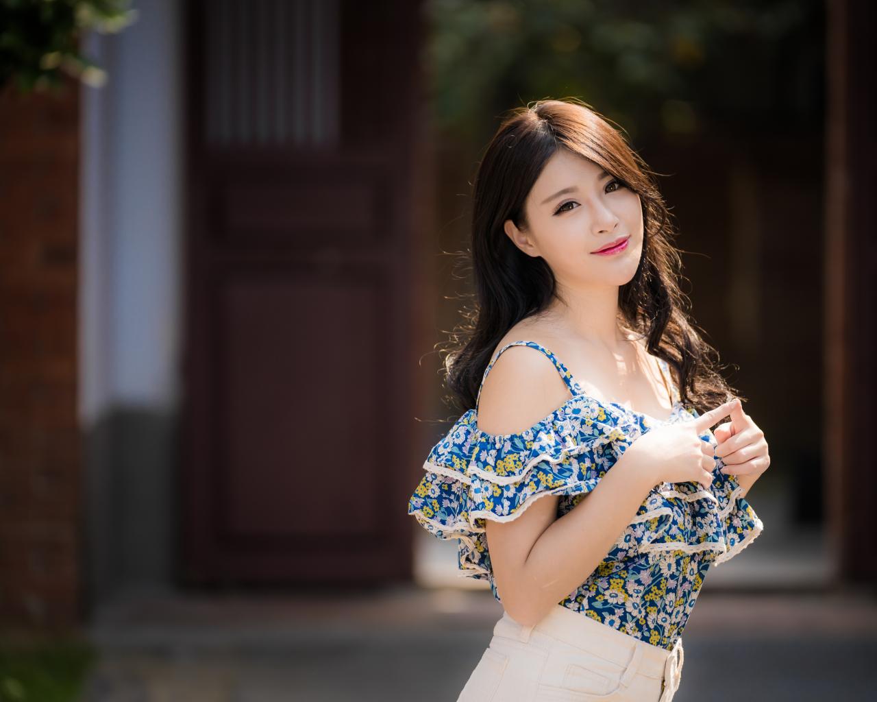 Обои Милая девушка азиатка с длинными волосами