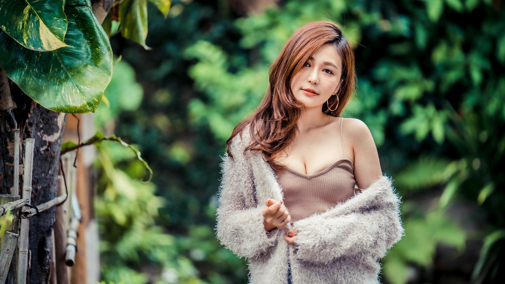 Обои Кареглазая девушка азиатка в теплой кофте