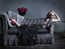 Обои Актриса Натали Портман лежит в красных туфлях на диване
