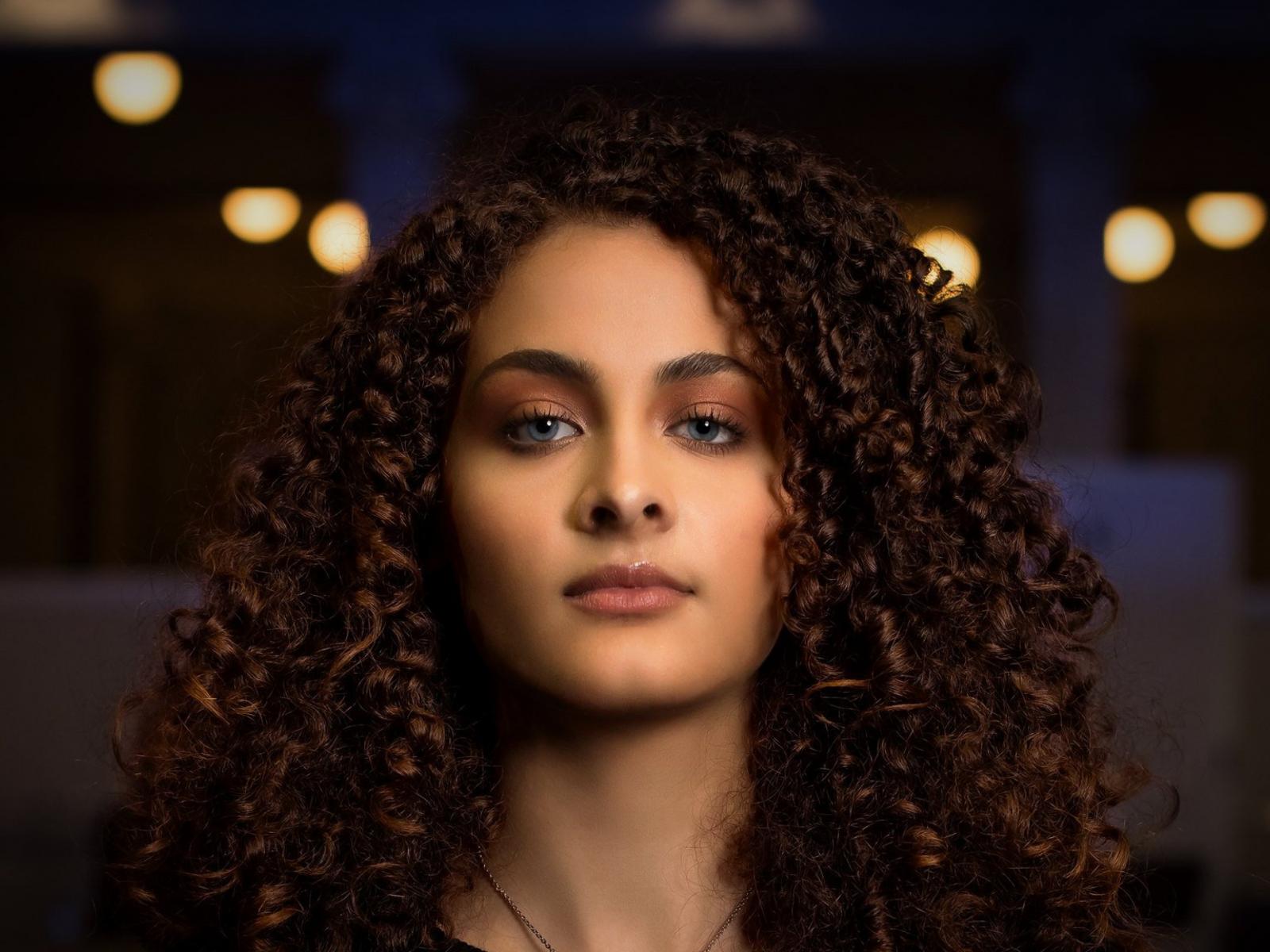 Обои Длинные кудрявые волосы у красивой голубоглазой девушки