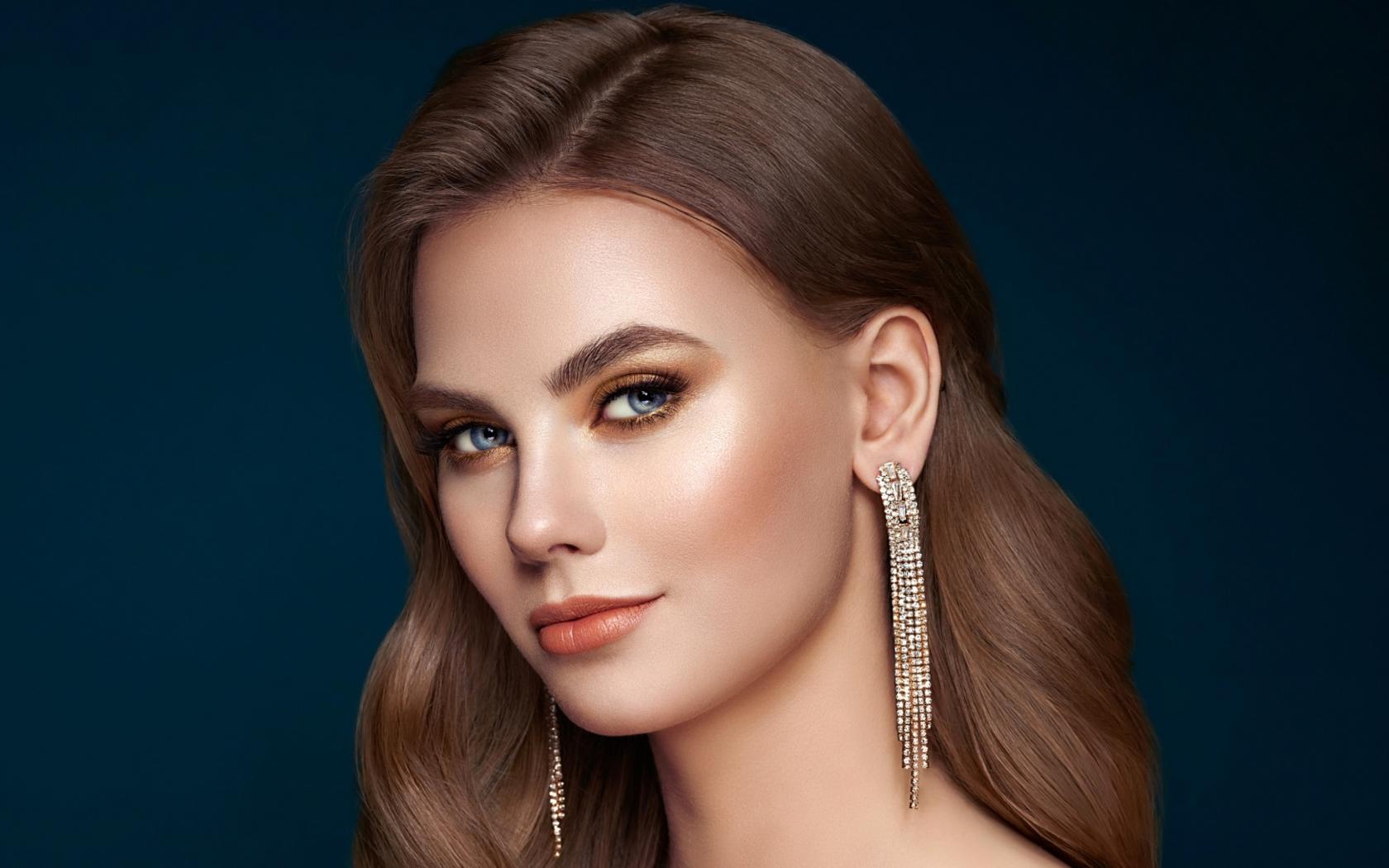 Обои Лицо красивой голубоглазой девушки с длинными волосами