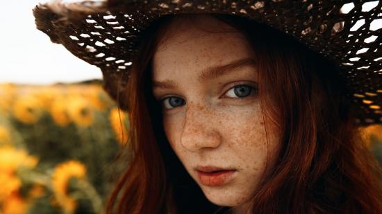 Обои Красивая девушка в шляпе с веснушками на лице