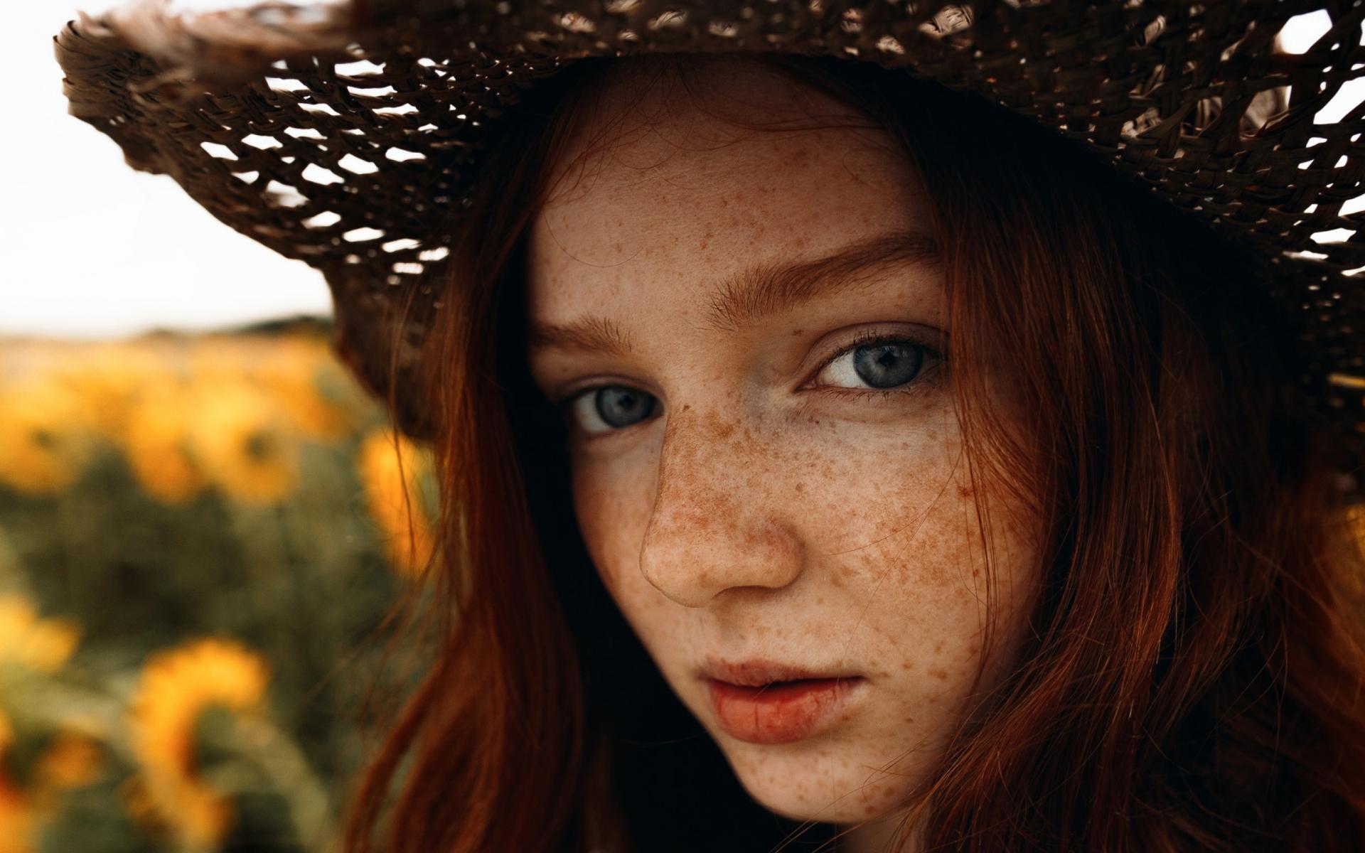 Обои Красивая девушка в шляпе с веснушками на лице