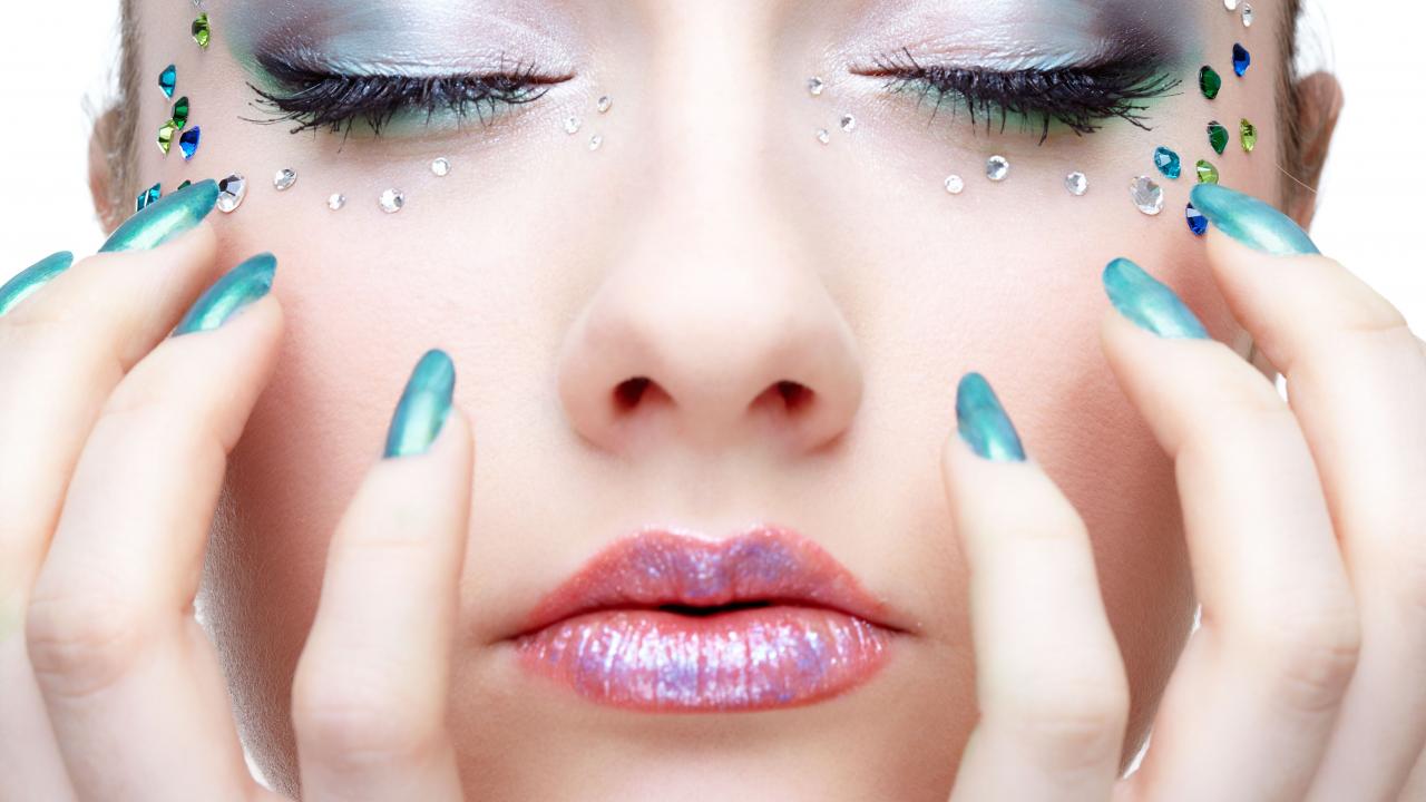 Обои Девушка с ярким макияжем и стразами на лице