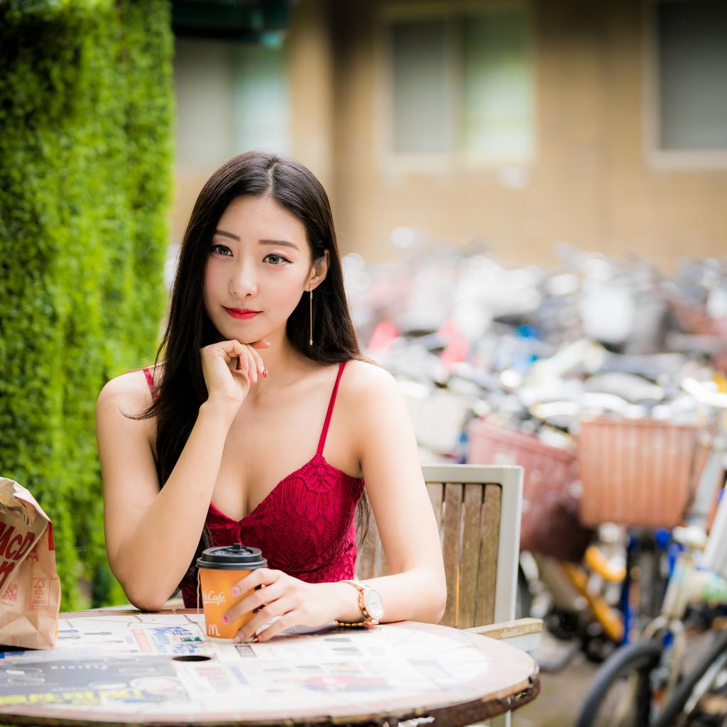 Обои Милая девушка азиатка сидит за столиком в кафе
