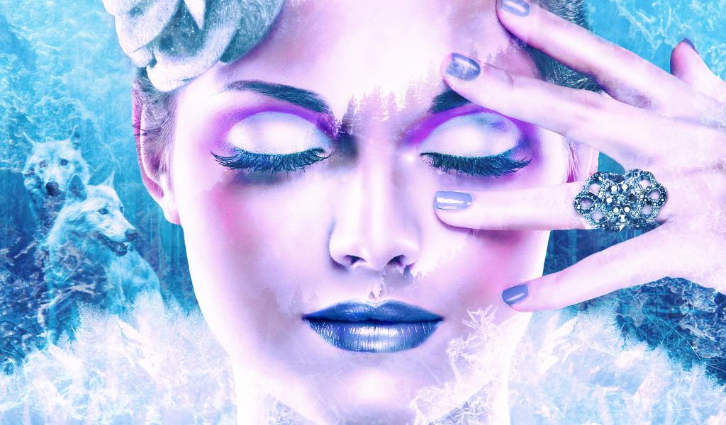 Обои Красивая девушка с макияжем с закрытыми глазами