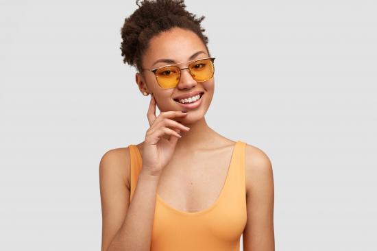 Обои Красивая улыбающаяся темнокожая девушка в солнечных очках