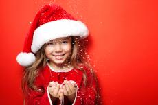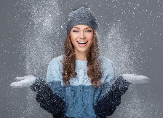 Обои Красивая улыбающаяся девушка ловит снег руками