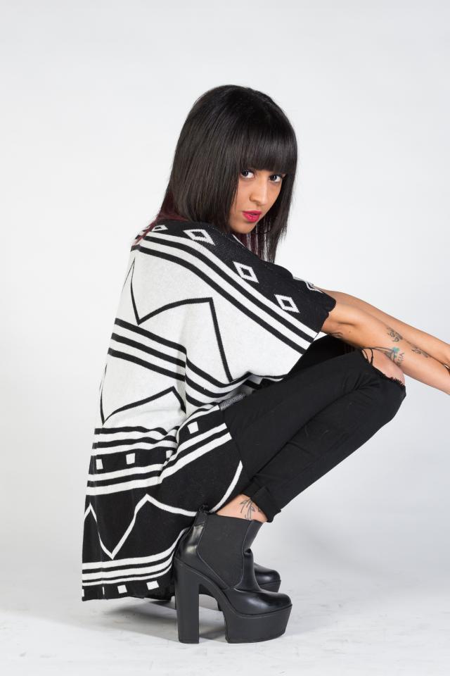 Обои Девушка с татуировками в форме цветов сидит на корточках