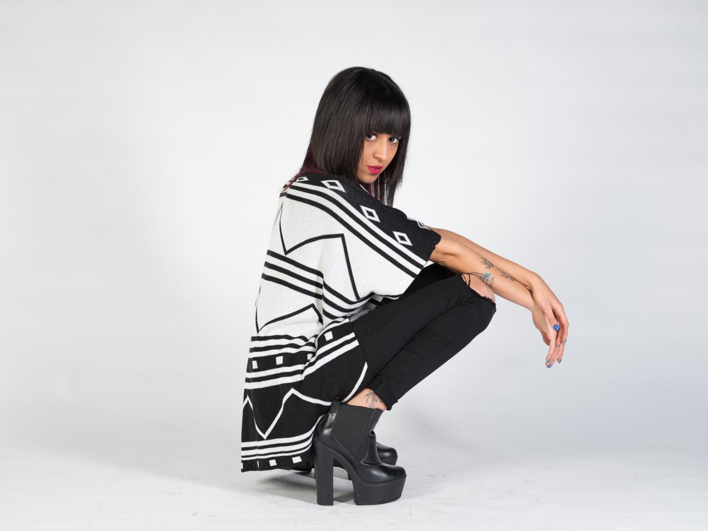Обои Девушка с татуировками в форме цветов сидит на корточках