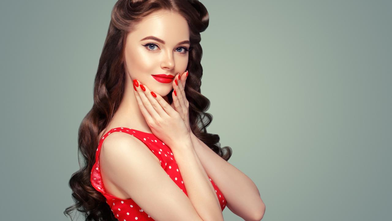 Обои Девушка в красном платье с красивыми длинными волосами