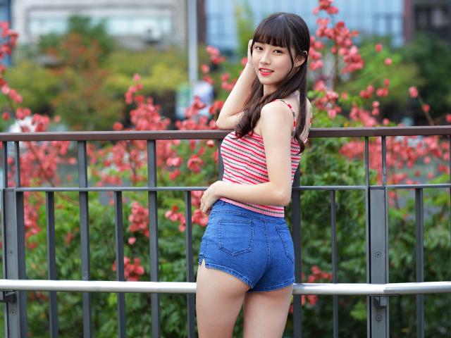 Обои Молодая азиатка в коротких шортах