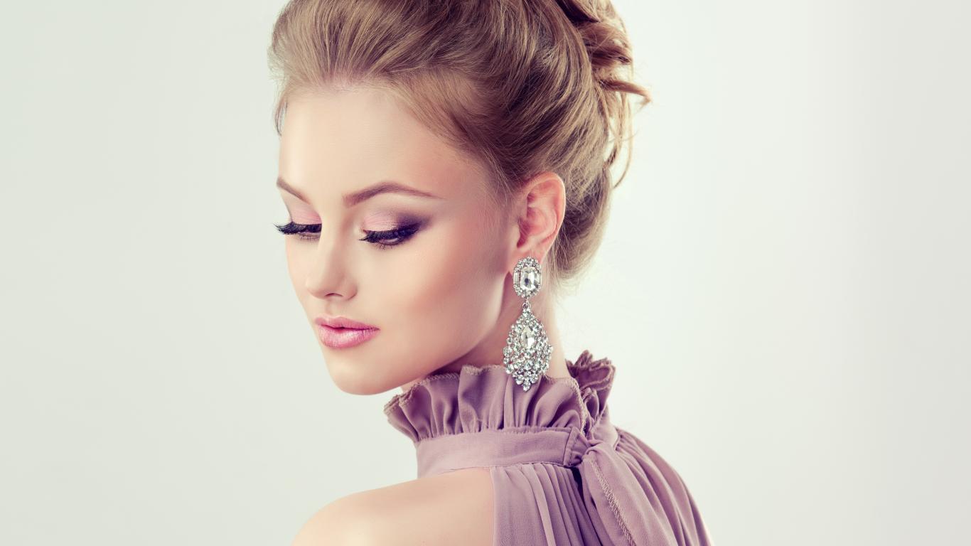 Обои Стильная девушка с прической и дорогими серьгами