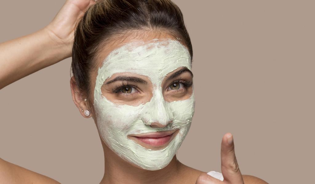 » Обои Девушка с завязанными волосами с косметической маской на лице