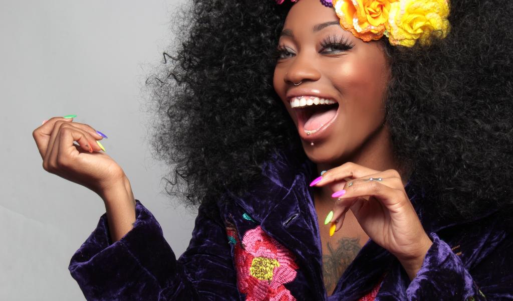 » Обои Улыбающаяся темнокожая девушка с цветами в волосах