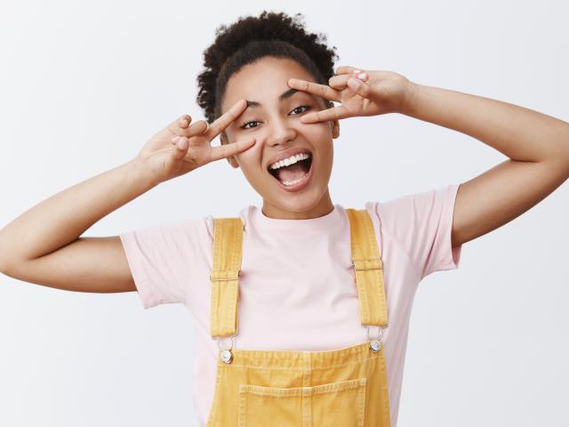 Обои Счастливая девушка с руками у лица