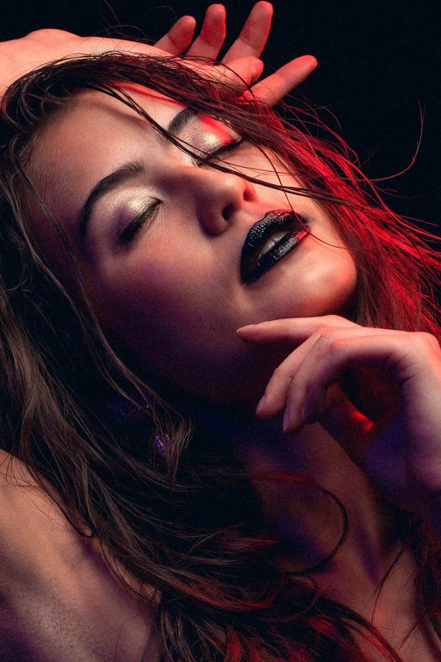 Обои Девушка с закрытыми глазами с черной помадой на губах
