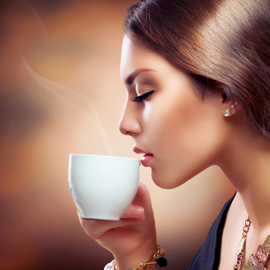 Обои Девушка с закрытыми глазами наслаждается кофе