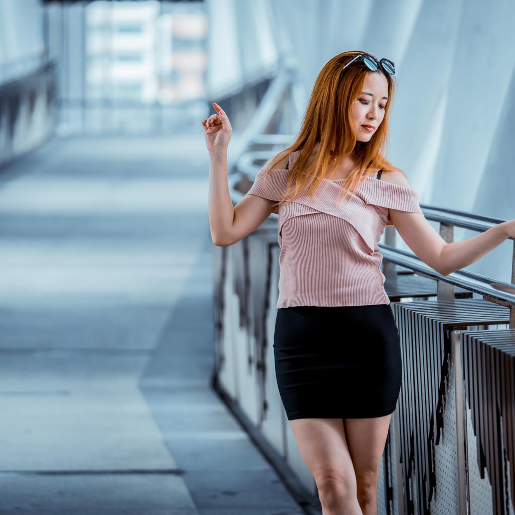 Обои Красивая рыжеволосая девушка азиатка в черной юбке