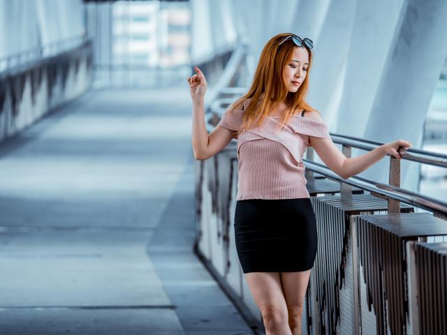 Обои Красивая рыжеволосая девушка азиатка в черной юбке