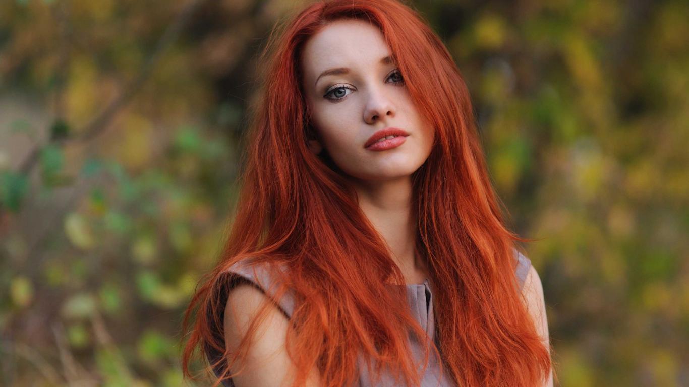 Обои Красивая рыжеволосая девушка с голубыми волосами