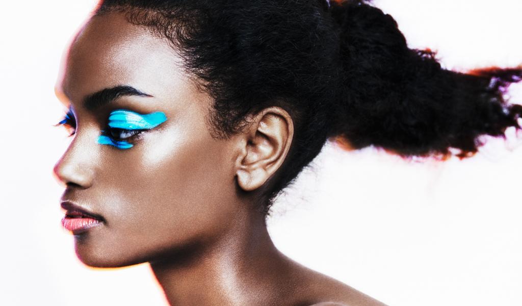 Обои Темнокожая девушка с голубыми тенями на глазах