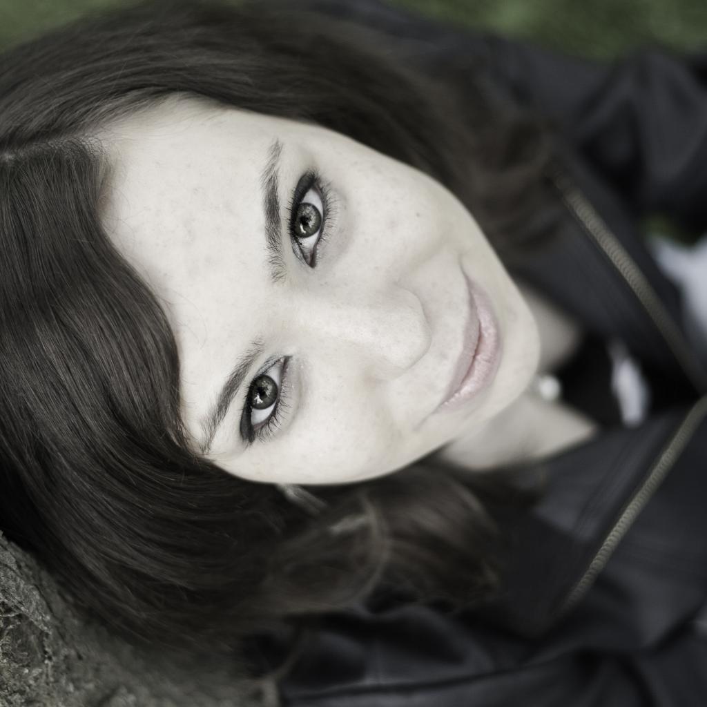 Обои Красивая девушка смотрит вверх сидя под деревом