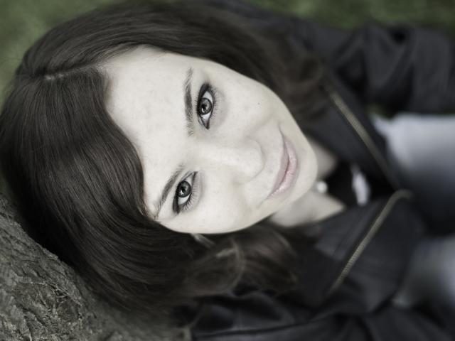 Обои Красивая девушка смотрит вверх сидя под деревом