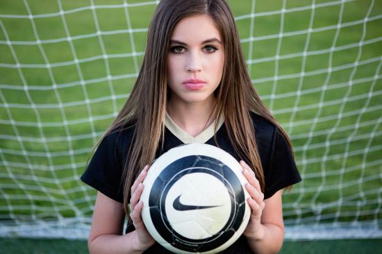 Обои Спортивная девушка вратарь с мячом в воротах