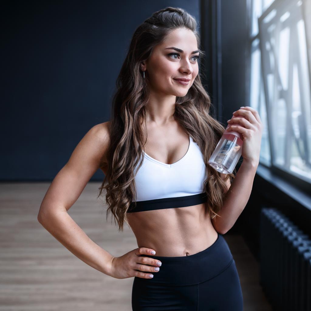 Обои Красивая спортивная девушка с бутылкой воды в руке