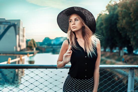 Обои Черная кружевная шляпа на голове у девушки