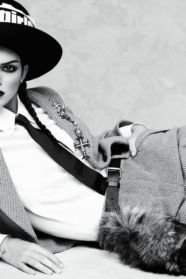 Обои Американская супермодель Кендалл Дженнер в большой черной шляпе