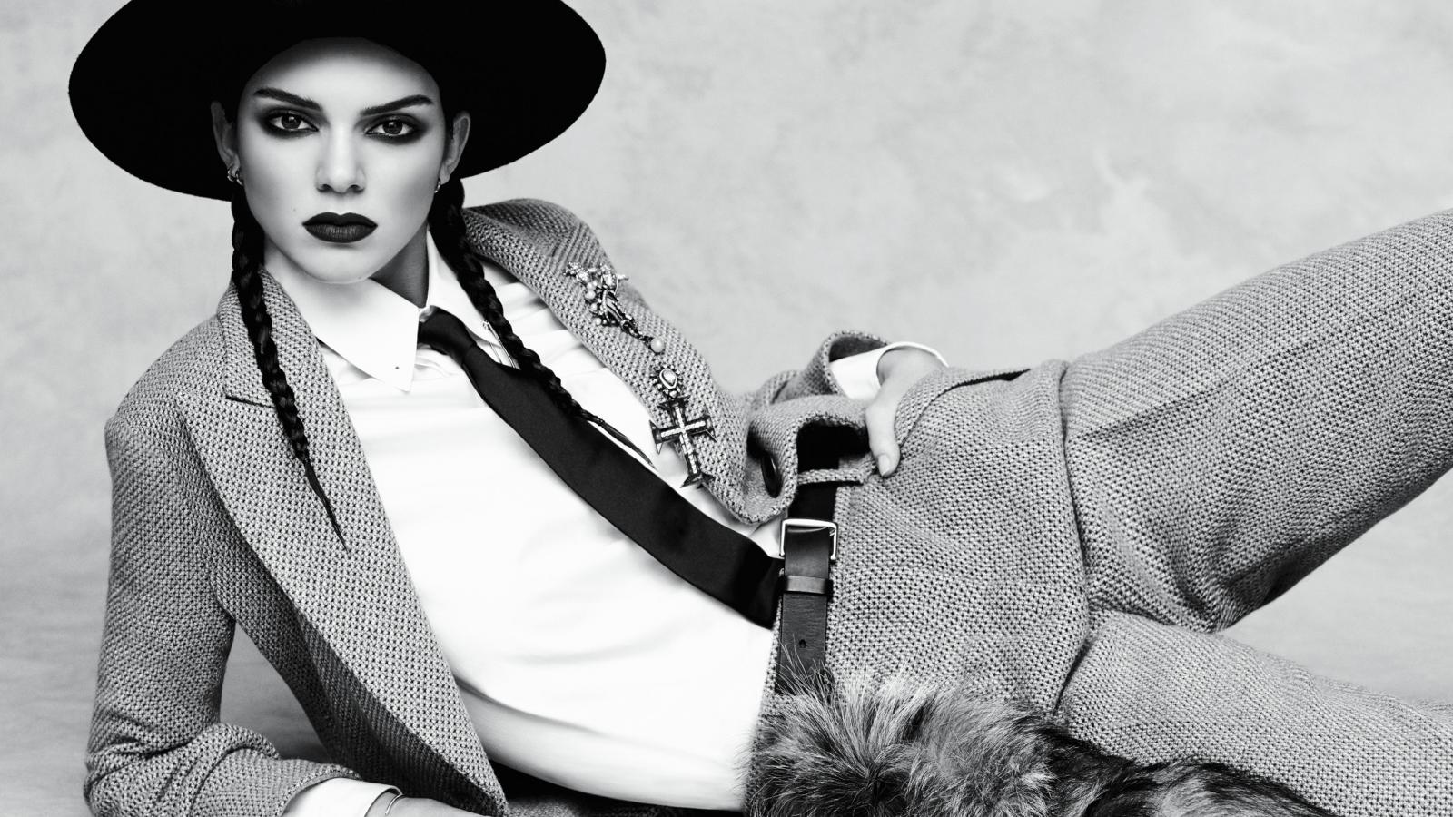 Обои Американская супермодель Кендалл Дженнер в большой черной шляпе