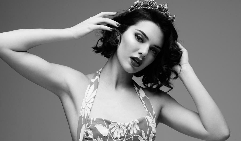 Обои Фотомодель Кендалл Дженнер в короне, черно белое фото