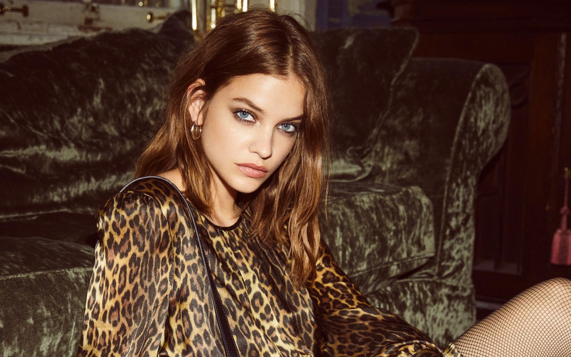 Обои Модель Барбара Палвин в леопардовом платье у дивана