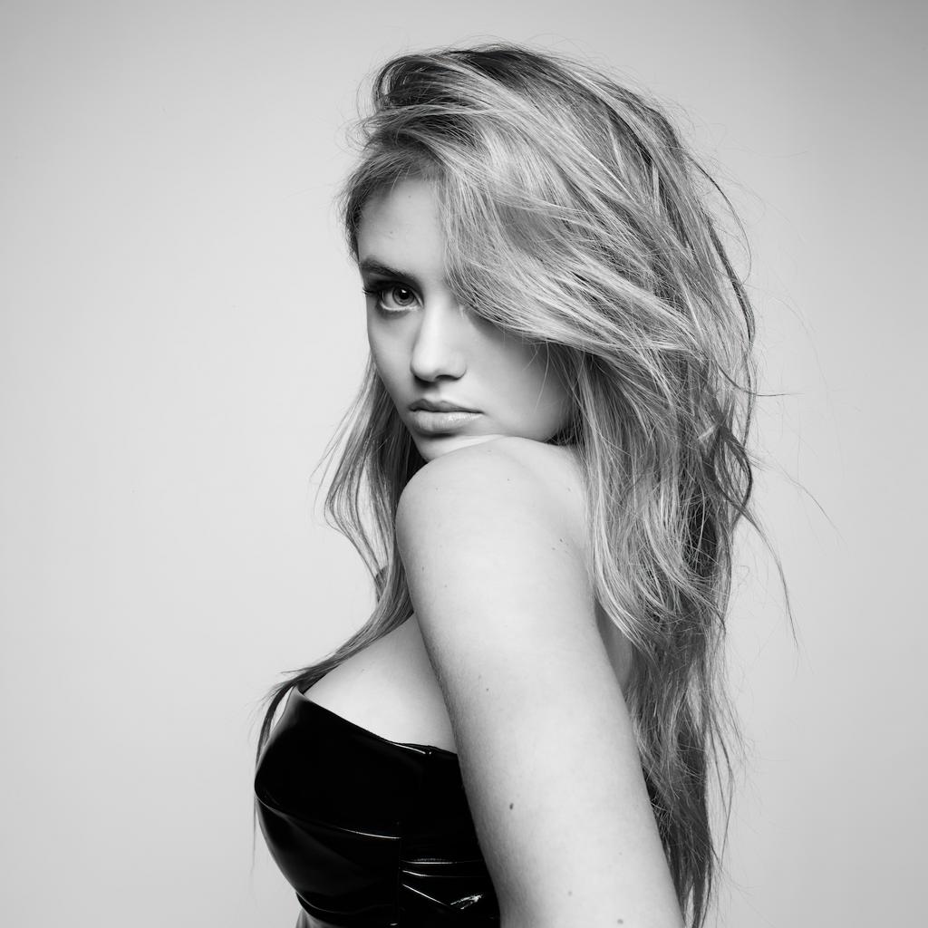Обои Стильная молодая модель Лени Клум на сером фоне