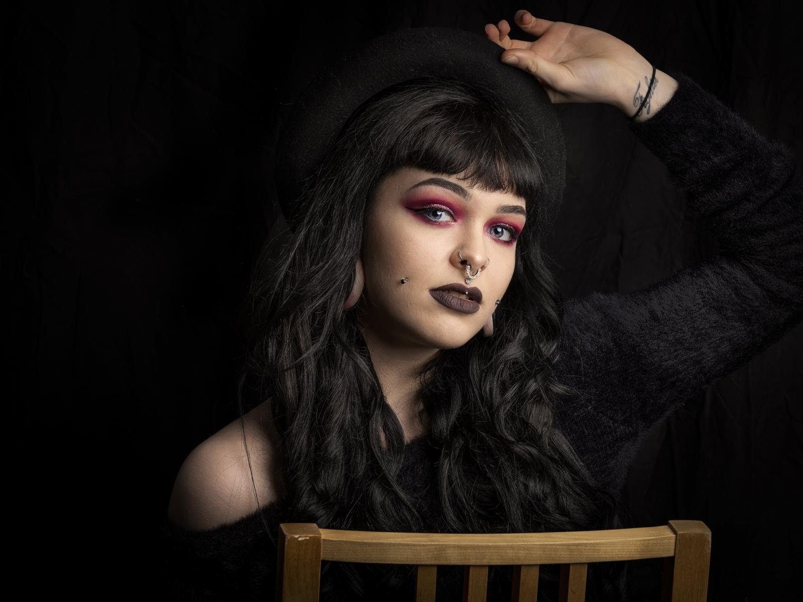 Обои Девушка неформалка с черной шляпе с пирсингом на лице