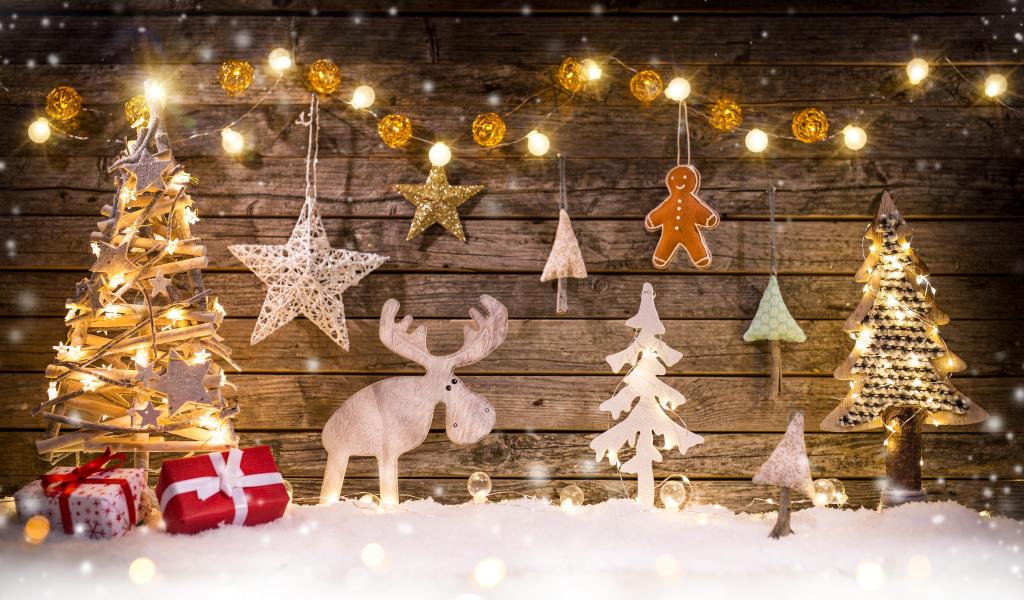 Обои Красивый декор у стены на Рождество