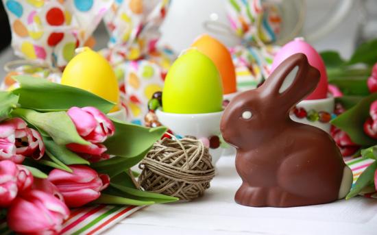 Обои Шоколадный пасхальный кролик и тюльпаны